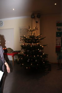 Höhepunkt bei dieser Feier war, wie jedes Jahr, die Tombola, bei der niemand leer ausging. Vom festlich geschmückten Weihnachtsbaum durfte jeder seine Tombola-Losnummer „pflücken“ und gleichzeitig die selbstgebastelte Krippe von Herrn Günter Kümmel bewundern. Mit Spannung wurde erwartet, wer wohl der Gewinner der Weihnachtsgans werden würde. Alle freuten sich mit der Gewinnerin Frau Traute Schieweck..