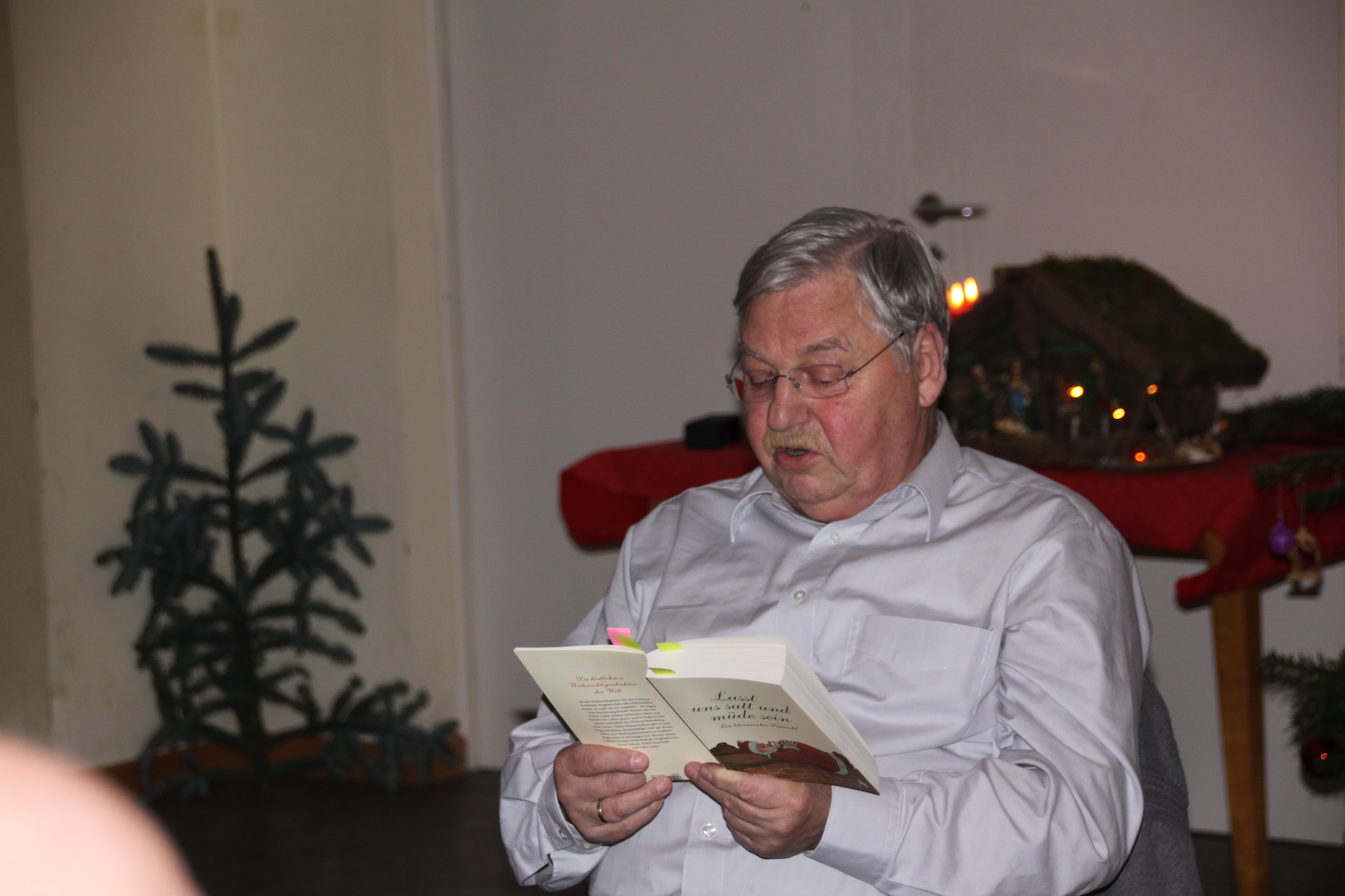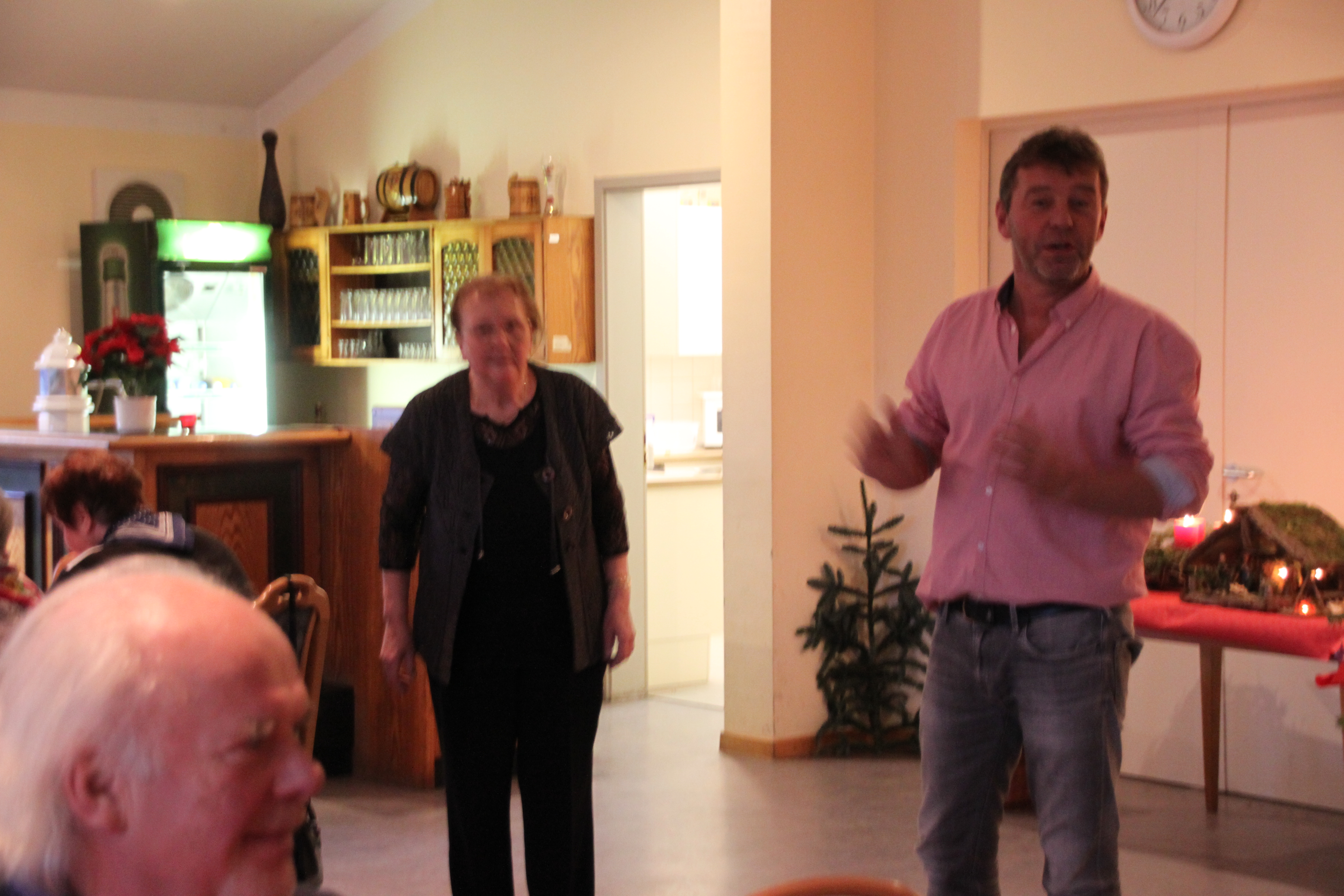 Frau Schümann und Herr Vödisch übernahmen den musikalischen Teil des Nachmittags. Die bekannten Weihnachtslieder sangen alle mit. Geschichten und Gedichte zur Weihnachtszeit trugen Frau Blumenschein, Frau Schümann, Frau Kotzmann und Herr Vödisch vor.